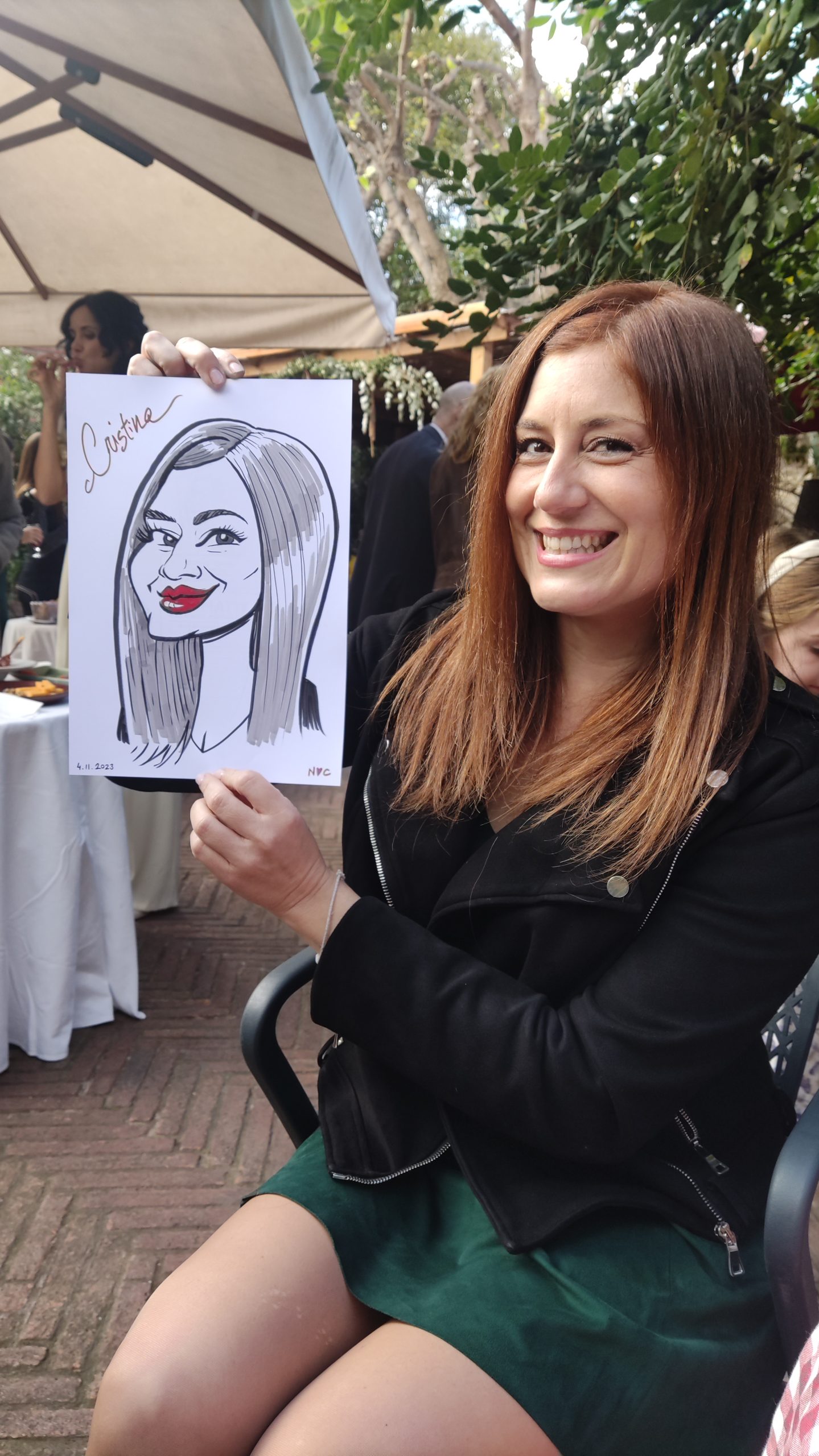 « Valentina, nuestra caricaturista, fue lo más destacado de nuestra boda. Ella aportó un elemento único y divertido a nuestra celebración y a nuestros invitados les encantó. Su talento es increíble, captura la imagen de todos con encanto y humor mientras hace que la experiencia sea agradable para cada persona.