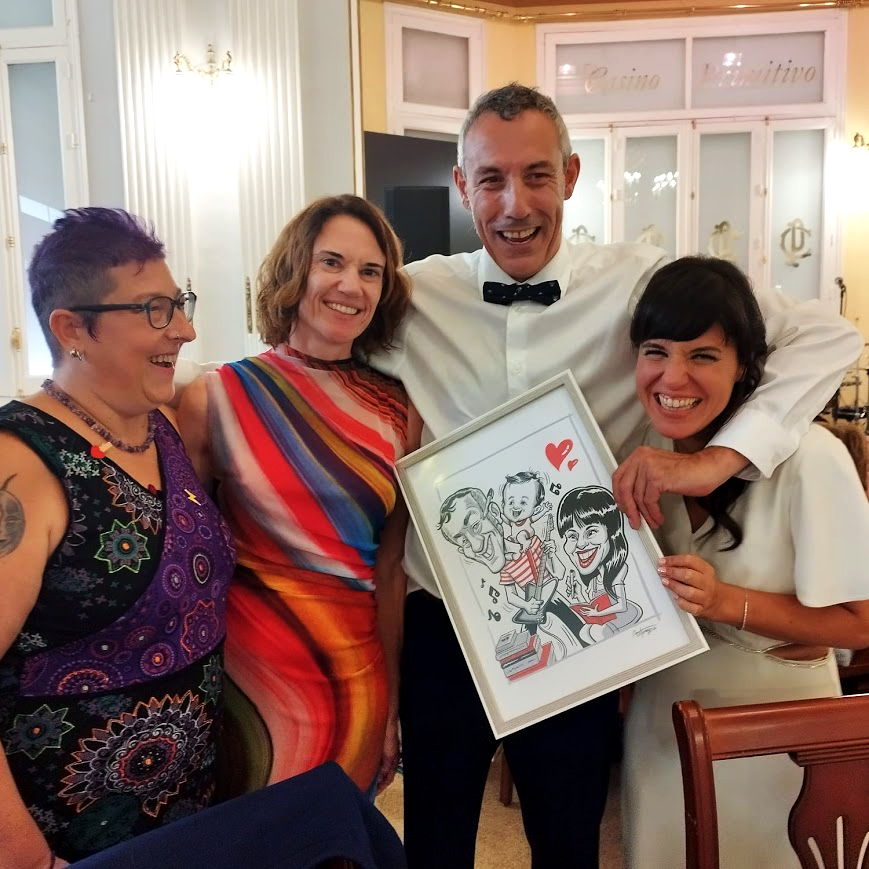 «Fuimos a la boda de un amigo y nos sorprendió con ésta magnífica artista que nos hizo una caricatura a cada invitado. Mucho mejor que las fotos!!! Las tengo enmarcadas en mi casa.»