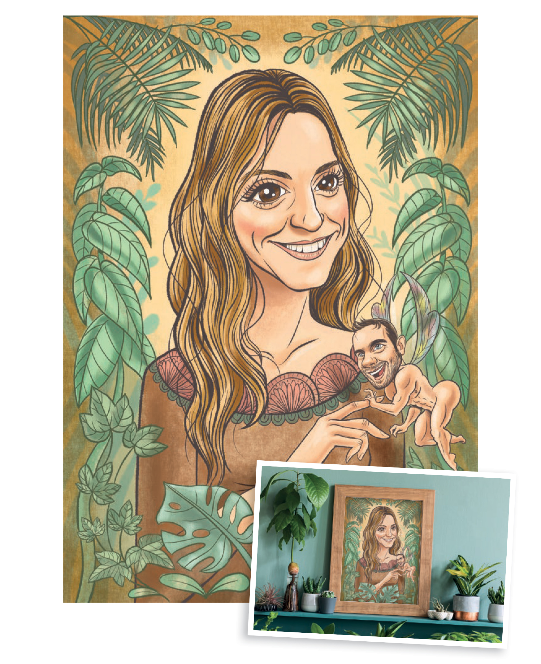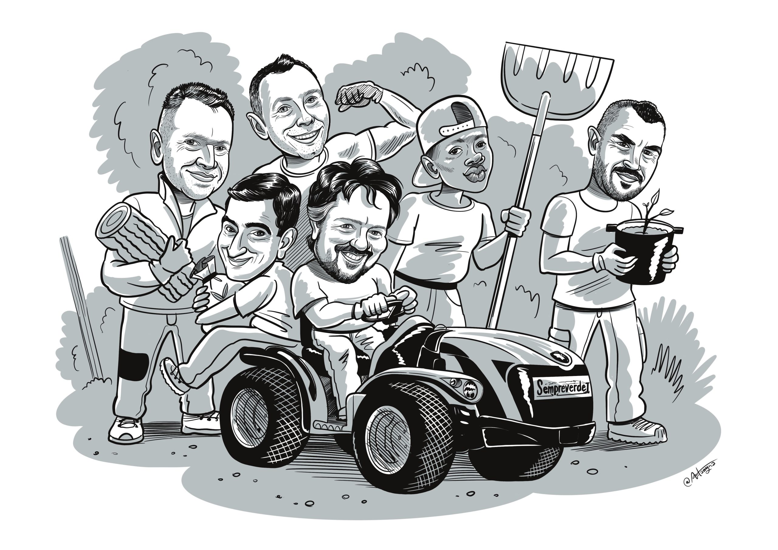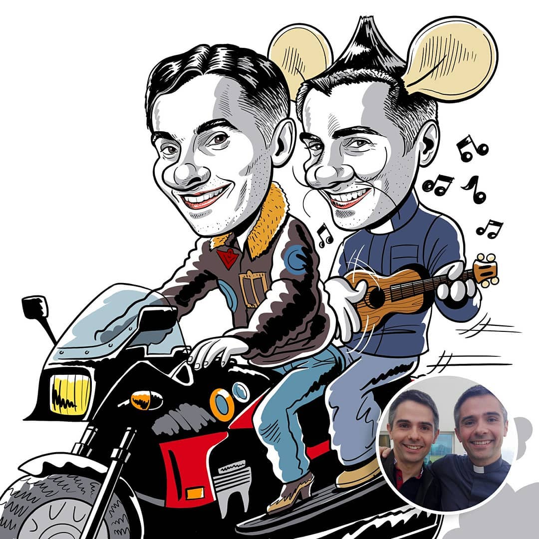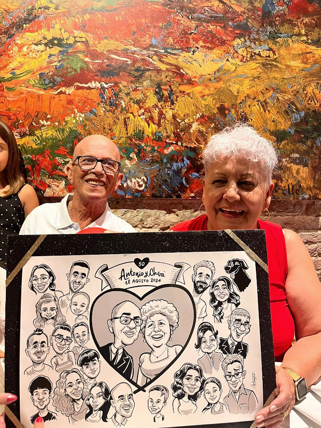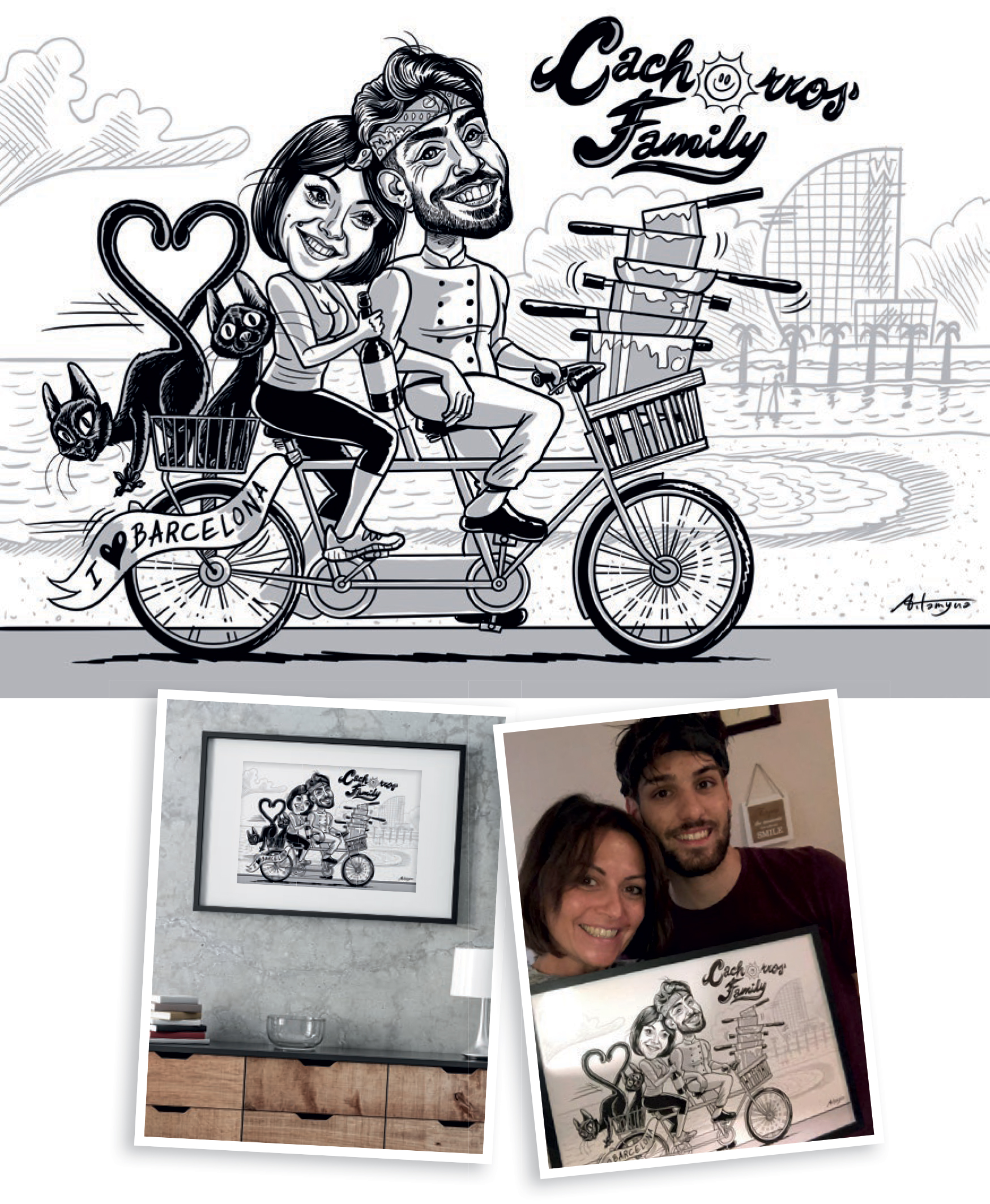 Bring your memories to life with colored caricatures. This vibrant, detailed style captures the essence of each person, infusing energy and creating a piece that will not go unnoticed.