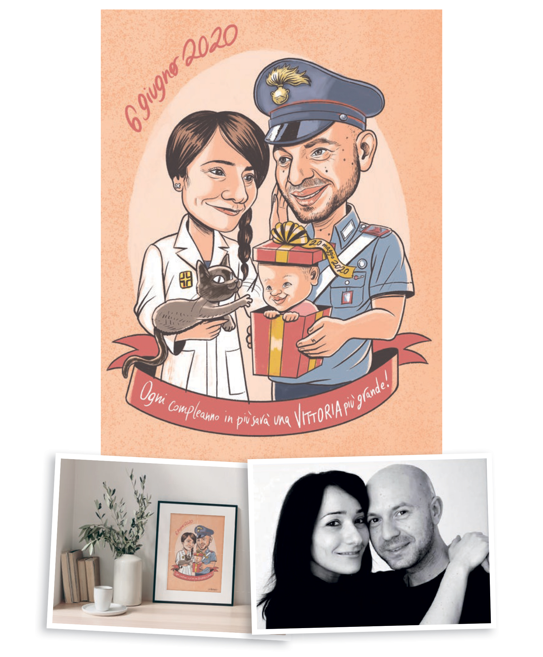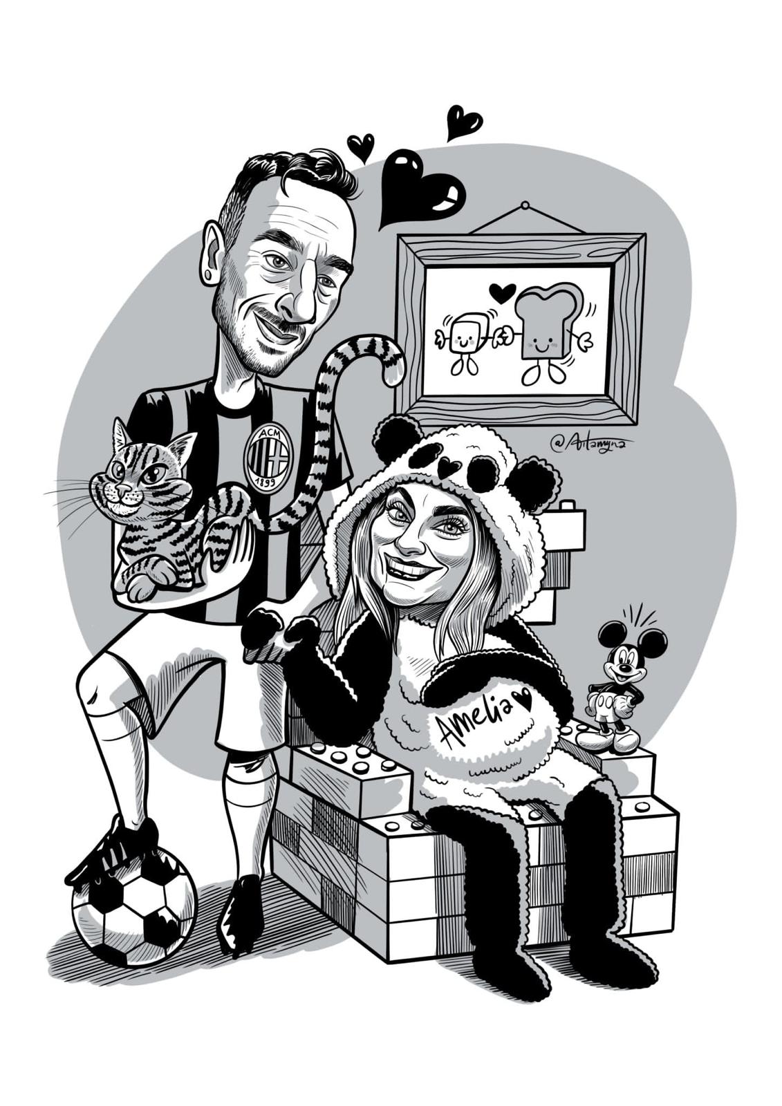 I transform your photos into personalized caricatures, in black and white or in color, enriched with the details you prefer. I can include hobbies, pets, or unique features. Just a few photos are enough for me to create an artistic, original, and fun gift!