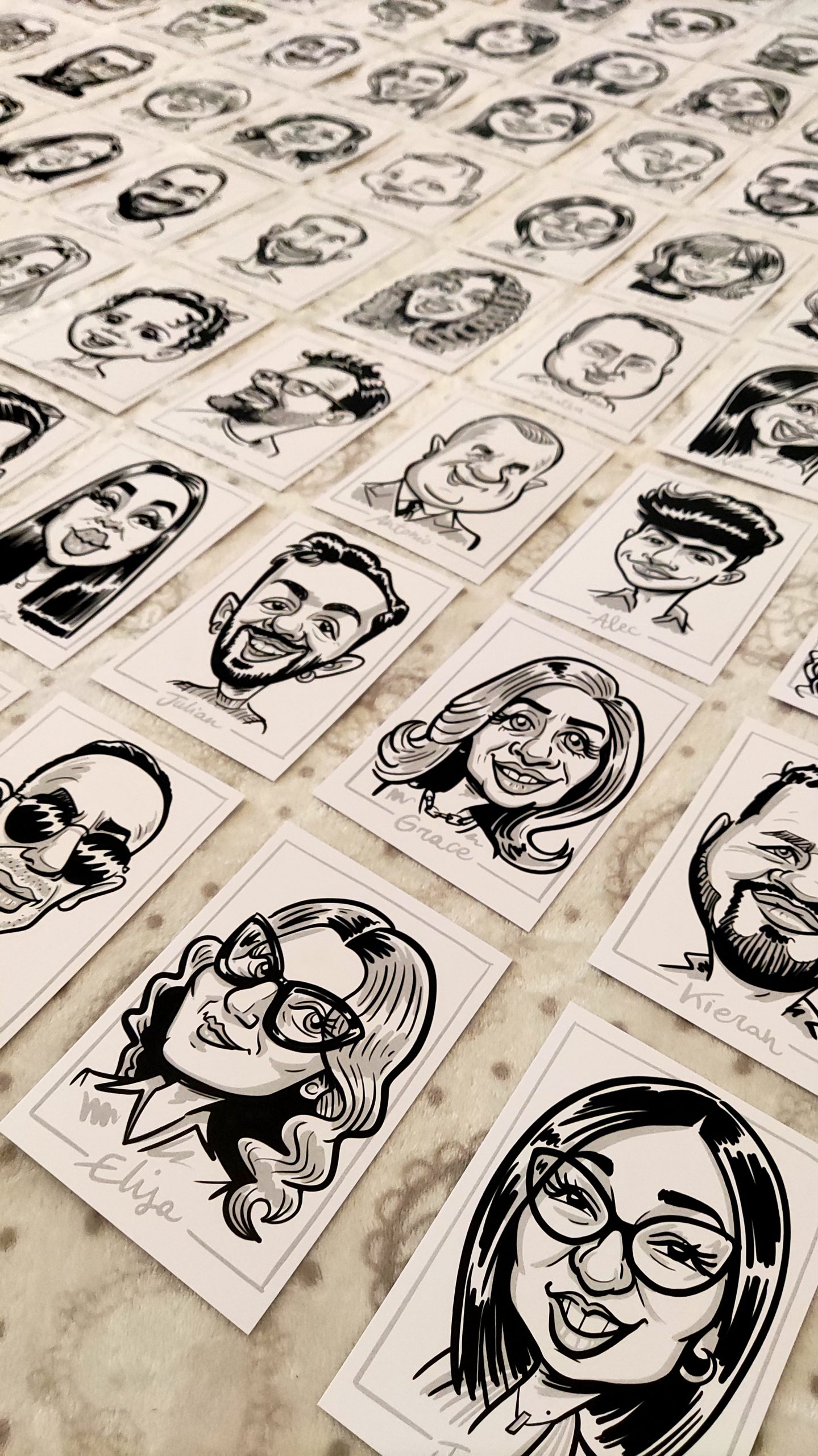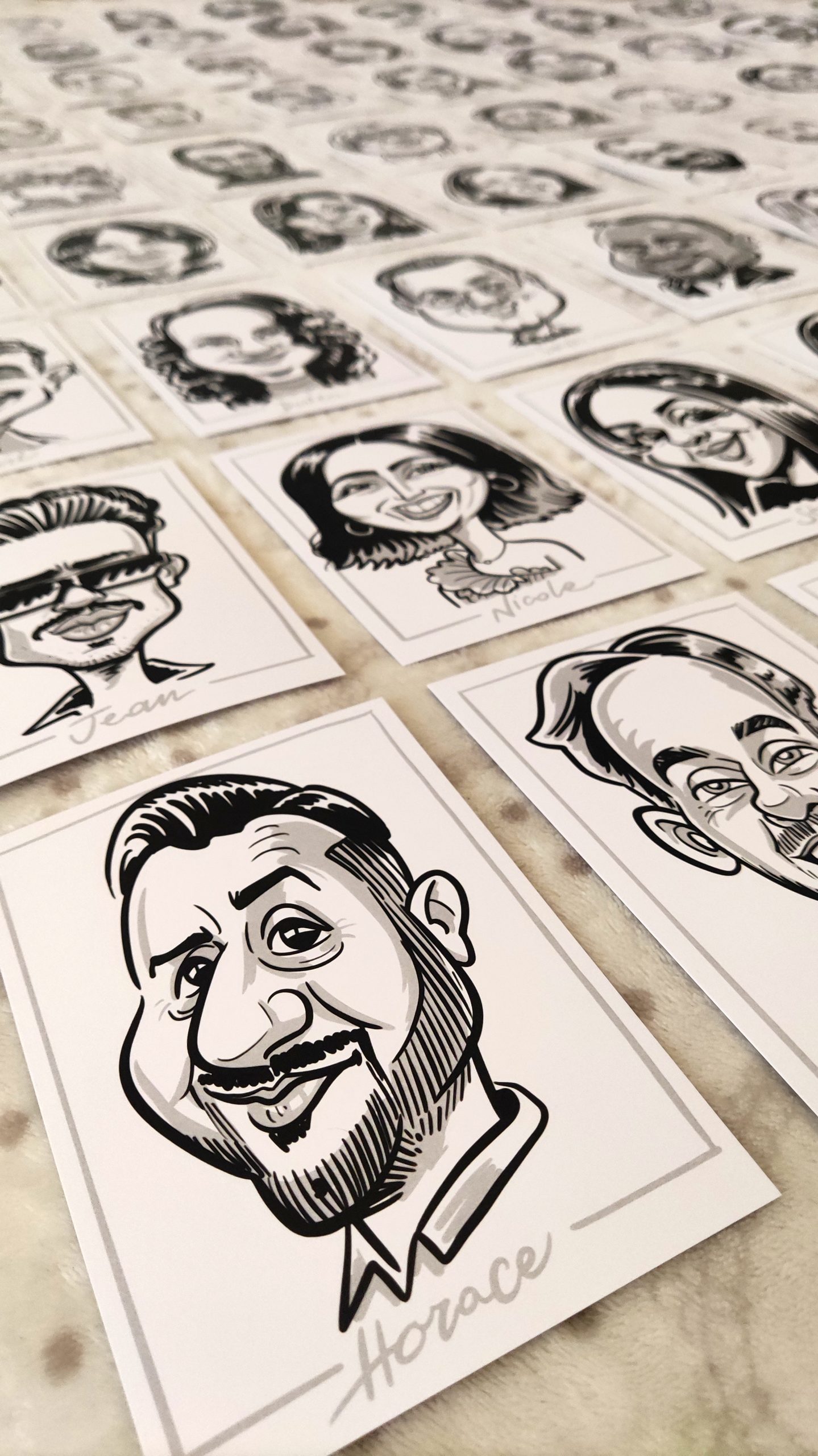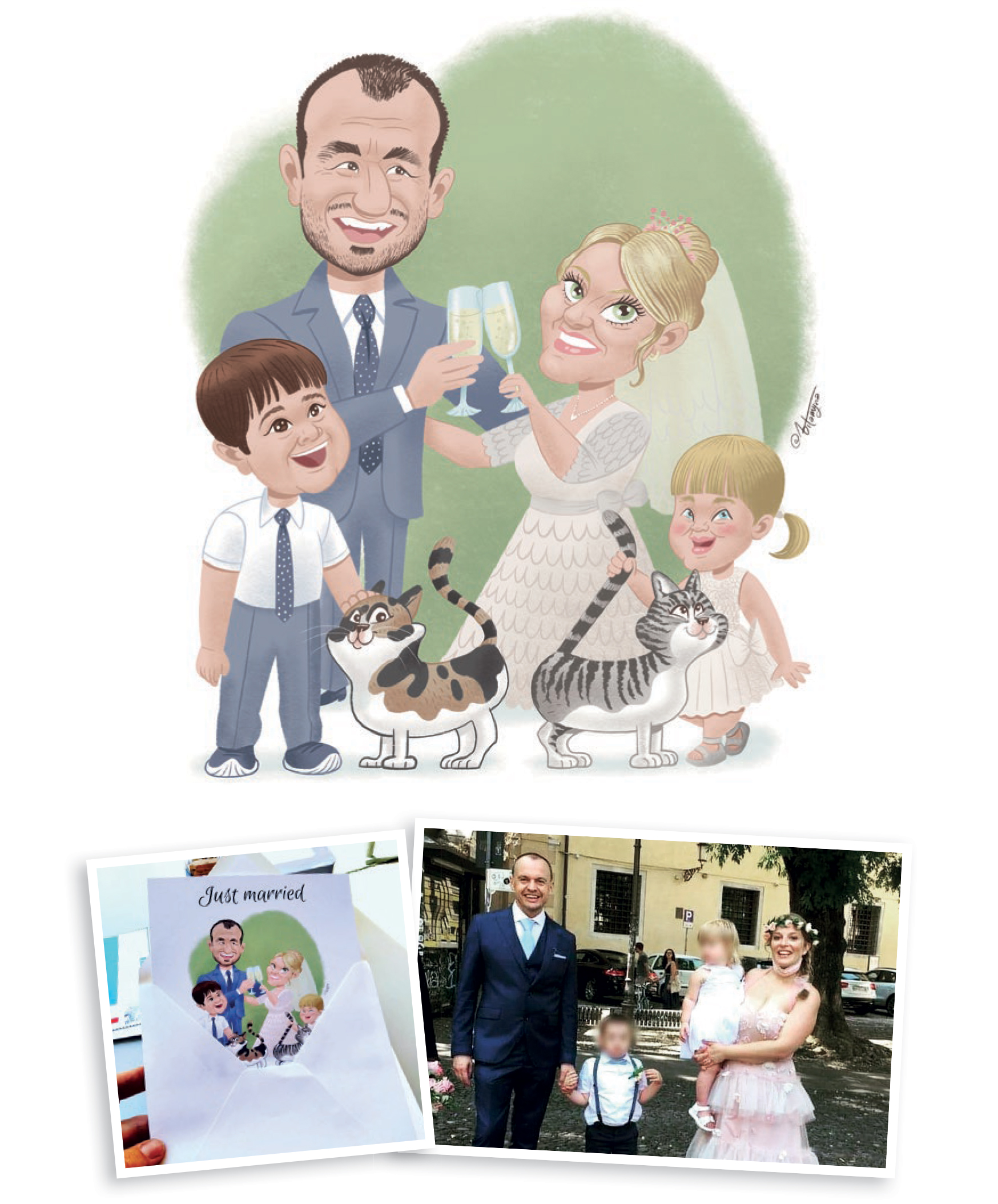 As a caricaturist and graphic designer, I can create unique wedding invitations, seating plans, special posters or cutouts with caricatures of the couple, and even personalized place cards with caricatures of all the guests, adding an original and fun touch to every detail of your event.